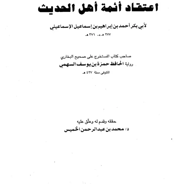 كتاب اعتقاد أئمة أهل الحديث (اعتقاد أهل السنة) لأبي بكر أحمد بن إبراهيم الإسماعيلي PDF