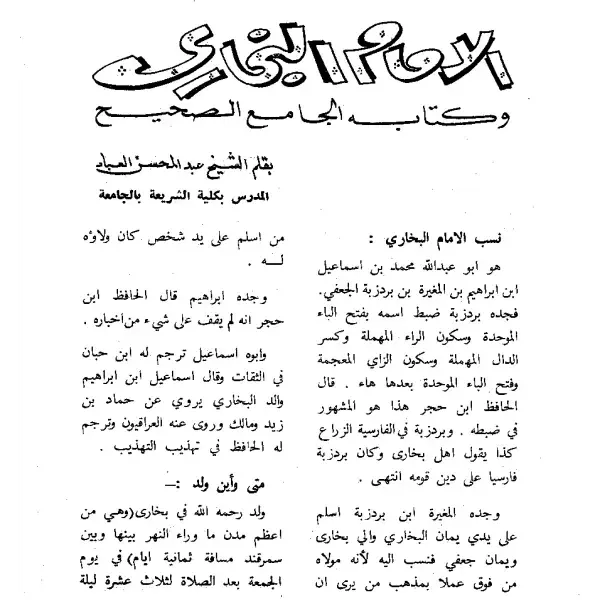 نبذة عن كتاب الإمام البخاري وكتابه الجامع الصحيح لعبد المحسن العباد PDF: