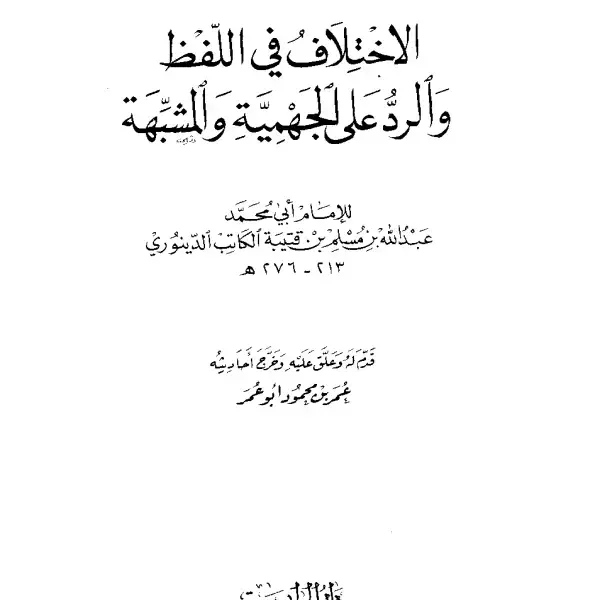 كتاب الاختلاف في اللفظ والرد على الجهمية والمشبهة لابن قتيبة PDF من كتب العقيدة الإسلامية، يحرر مسائل التوحيد والإيمان ويعرض معتقد أهل السنة والجماعة بأسلوب واضح يناسب طالب العلم والباحث.