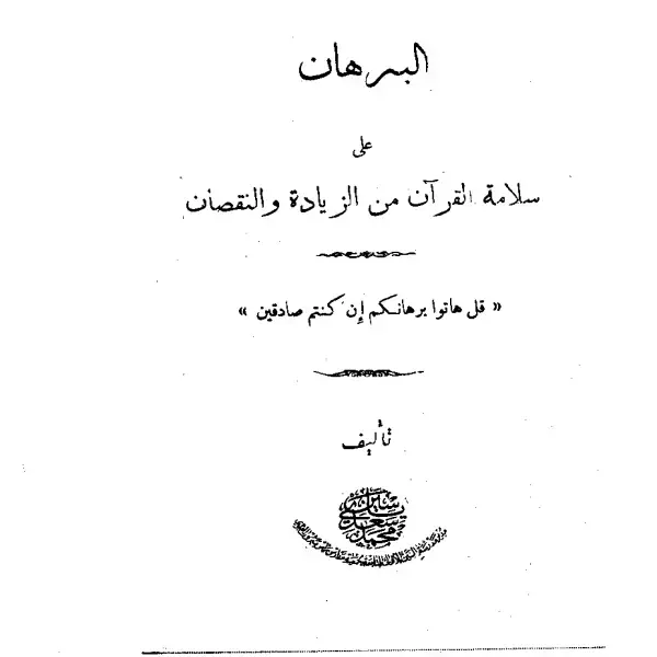 نبذة عن كتاب البرهان على سلامة القرآن من الزيادة والنقصان لمحمد سعدي ياسين PDF: