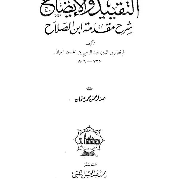 كتاب التقييد والإيضاح شرح مقدمة ابن الصلاح لعبد الرحيم العراقي PDF من كتب علوم الحديث، يشرح مصطلحات المحدثين وقواعد الجرح والتعديل وضوابط قبول الرواية.