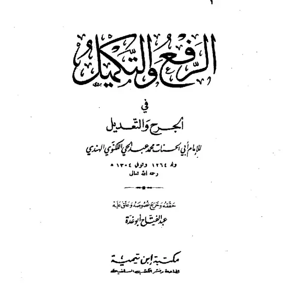 كتاب الرفع والتكميل في الجرح والتعديل لأبي الحسنات محمد عبد الحي اللكنوي PDF من كتب علوم الحديث، يشرح مصطلحات المحدثين وقواعد الجرح والتعديل وضوابط قبول الرواية.