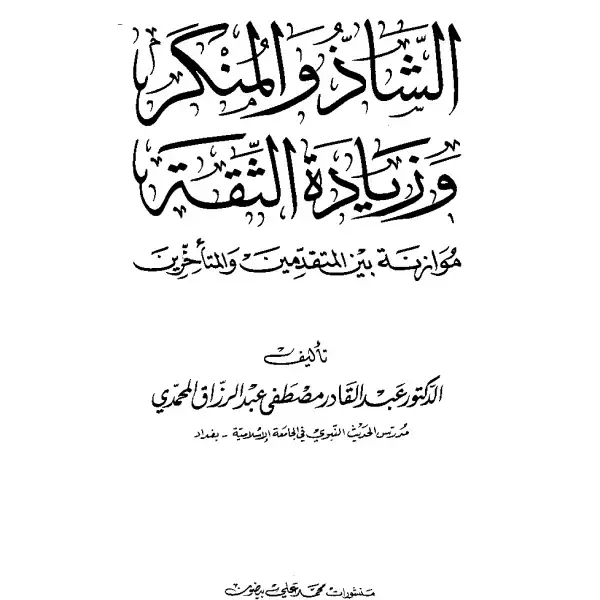 كتاب الشاذ والمنكر وزيادة الثقة (موازنة بين المتقدمين والمتأخرين) لعبد القادر مصطفى المحمدي PDF من كتب علوم الحديث، يشرح مصطلحات المحدثين وقواعد الجرح والتعديل وضوابط قبول الرواية.