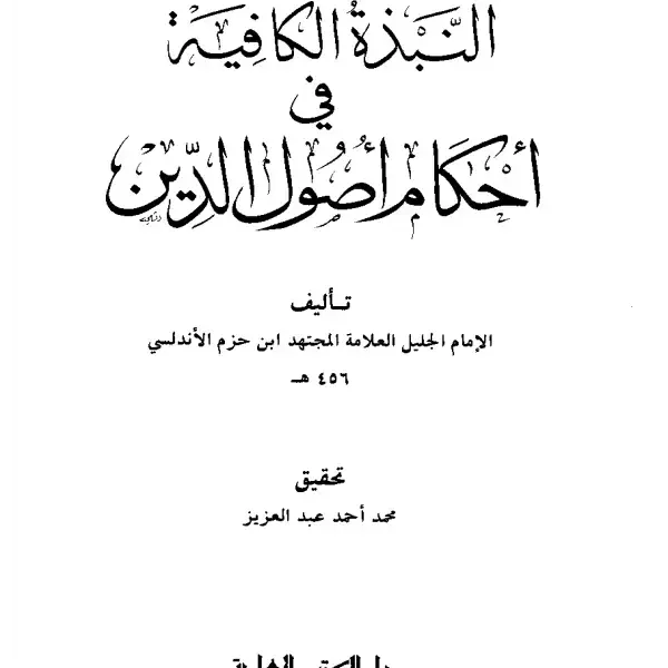 كتاب النبذة الكافية في أحكام أصول الدين لابن حزم الأندلسي PDF من كتب أصول الفقه، يقرر أدلة الأحكام وقواعد الاستنباط ويناسب من يدرس منهجية الاجتهاد الشرعي.