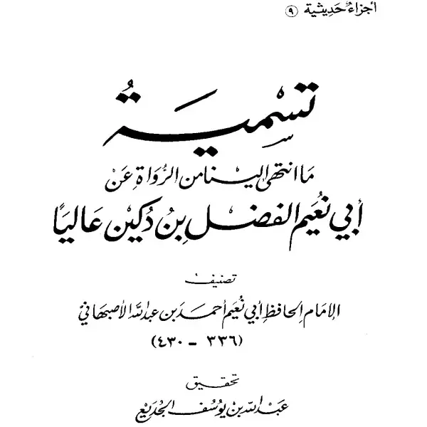 كتاب تسمية ما انتهى إلينا من الرواة عن أبي نعيم الفضل بن دكين عاليًا لأبي نعيم الأصبهاني PDF من كتب السنة والحديث النبوي، يجمع الأحاديث ويعرّف بمصادرها في خدمة طالب الحديث والفقه.
