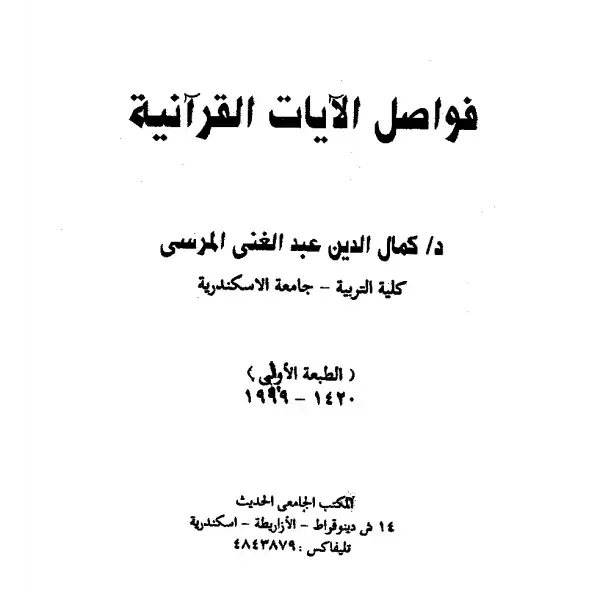 كتاب فواصل الآيات القرآنية لكمال الدين عبد الغني المرسي PDF من كتب علوم القرآن وأصول التفسير، يشرح قواعد فهم النص القرآني وأنواع علومه ومناهج المفسرين.