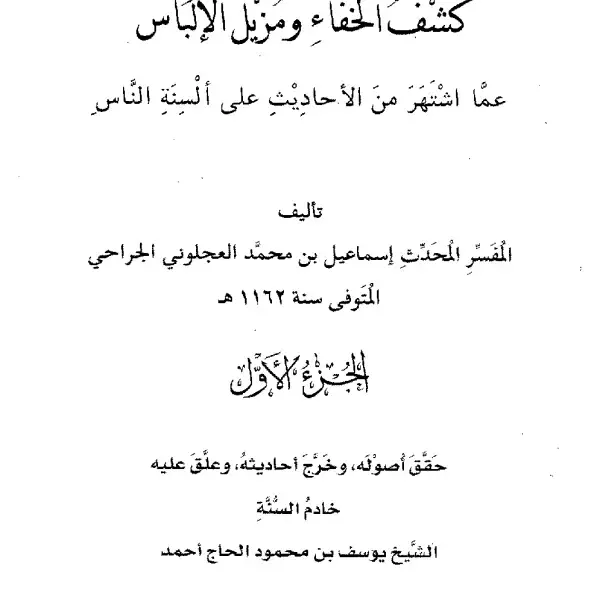 كتاب كشف الخفاء ومزيل الإلباس عما اشتهر من الأحاديث على ألسنة الناس لإسماعيل بن محمد العجلوني PDF