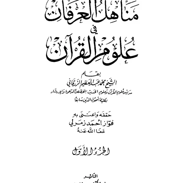 كتاب مناهل العرفان في علوم القرآن لمحمد عبد العظيم الزرقاني PDF من كتب علوم القرآن وأصول التفسير، يشرح قواعد فهم النص القرآني وأنواع علومه ومناهج المفسرين.