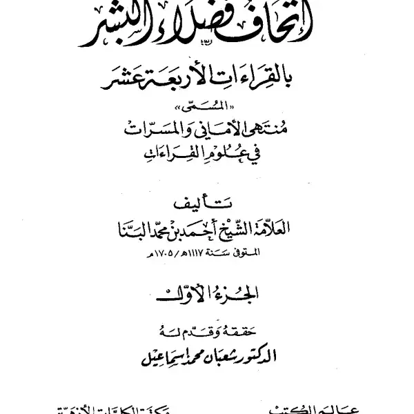 نبذة عن كتاب منتهى الأماني والمسرات في علوم القراءات (إتحاف فضلاء البشر بالقراءات الأربعة عشر) لأحمد بن محمد الدمياطي البناء PDF: