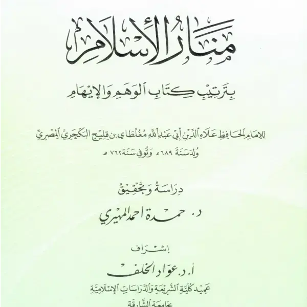 منار الإسلام بترتيب كتاب الوهم والإيهام لعلاء الدين مغلطاي بن قليج PDF من كتب التخريج والأطراف، يتتبع طرق الأحاديث ومواضعها في دواوين السنة ويعين الباحث على توثيق النصوص.